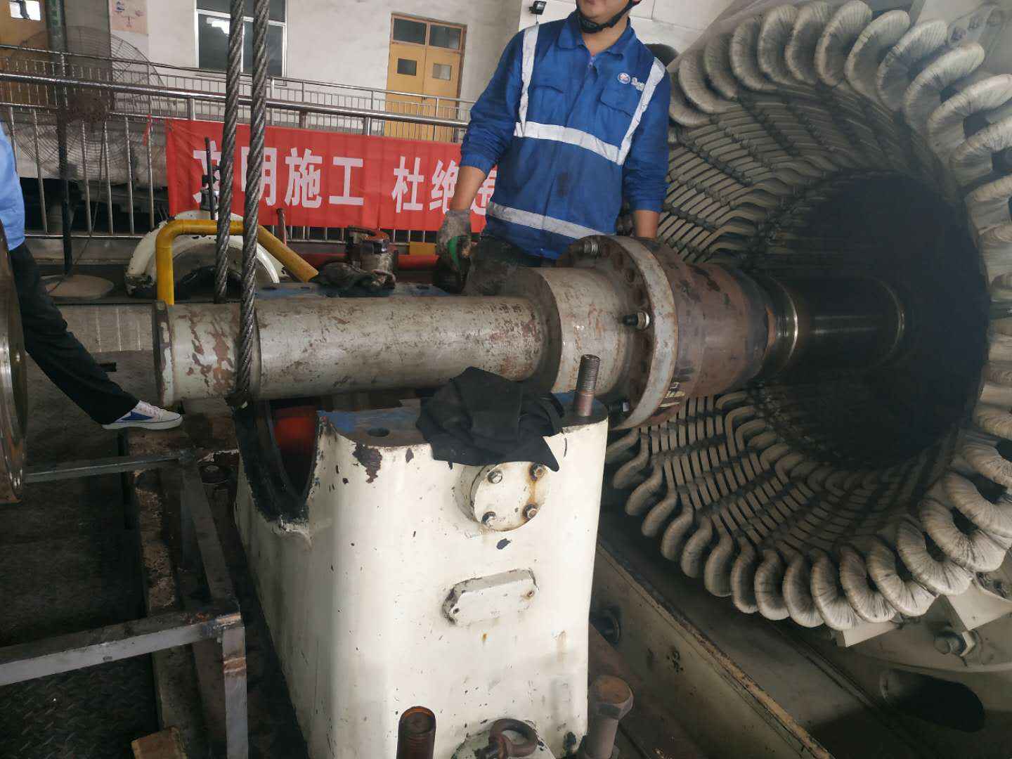 由开云官方端网站登录入口-开云online(中国)承建的山东海能化学有限责任公司机组B15MW背压式汽轮机组(原 C25抽汽凝汽式机组)大修工程现已完成凝结水泵、油站检修工作,发电机前后轴承座基础垫铁研磨工作,目前蒸汽室螺栓的拆卸工作及发电机定子与转子的清理工作陆续启动,下气缸吊隔板工作也在稳步进行中。